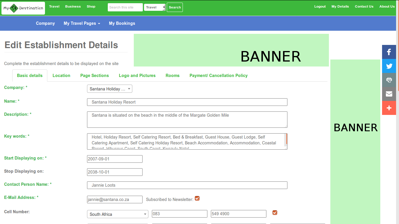 Get a full page advert in one suburb and one category on the site, send free e-mails and more! Only R 10.00 per day!